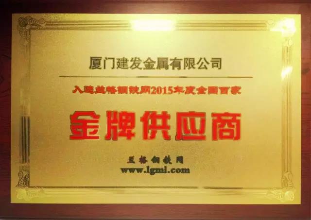在蘭格鋼鐵網(wǎng)的主持下,經(jīng)過(guò)數(shù)輪謹(jǐn)慎、公正評(píng)選,"蘭格鋼鐵網(wǎng)金牌供應(yīng)商TOP100"評(píng)選結(jié)果終于塵埃落定。建發(fā)金屬公司憑借專業(yè)服務(wù)、守信經(jīng)營(yíng),獲評(píng)蘭格金牌供應(yīng)商TOP100,并受頒牌匾和證書(shū),這已是建發(fā)金屬公司連續(xù)第二次入選該榜單。此次入選的企業(yè)都是具有一定規(guī)模和實(shí)力,供應(yīng)正品材,價(jià)格實(shí)惠,準(zhǔn)斤足量、服務(wù)到位的企業(yè),具備較高的行業(yè)權(quán)威性和認(rèn)可度。