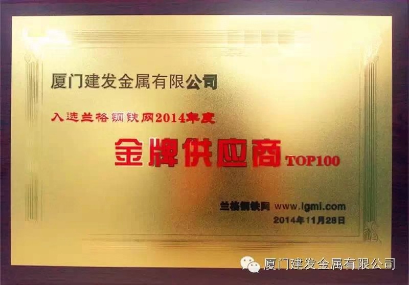 在蘭格鋼鐵網(wǎng)的主持下,經(jīng)過數(shù)輪謹(jǐn)慎、公正評選,"蘭格鋼鐵網(wǎng)金牌供應(yīng)商TOP100"評選結(jié)果終于塵埃落定。建發(fā)金屬公司憑借專業(yè)服務(wù)、守信經(jīng)營,獲評蘭格金牌供應(yīng)商TOP100,并受頒牌匾和證書。此次金牌供應(yīng)商的評選活動由蘭格鋼鐵網(wǎng)聯(lián)合全國主要省市建委、各省市鋼鐵貿(mào)易商會協(xié)會、下游用鋼行業(yè)協(xié)會、大型工程采購企業(yè)等共同開展,入選的企業(yè)都是具有一定規(guī)模和實(shí)力,供應(yīng)正品材,價(jià)格實(shí)惠,準(zhǔn)斤足量、服務(wù)到位的企業(yè),具備較高的行業(yè)權(quán)威性和認(rèn)可度。