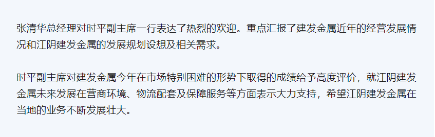 江陰市政協(xié)副主席、商務(wù)局局長(zhǎng)時(shí)平等一行來(lái)訪建發(fā)金屬